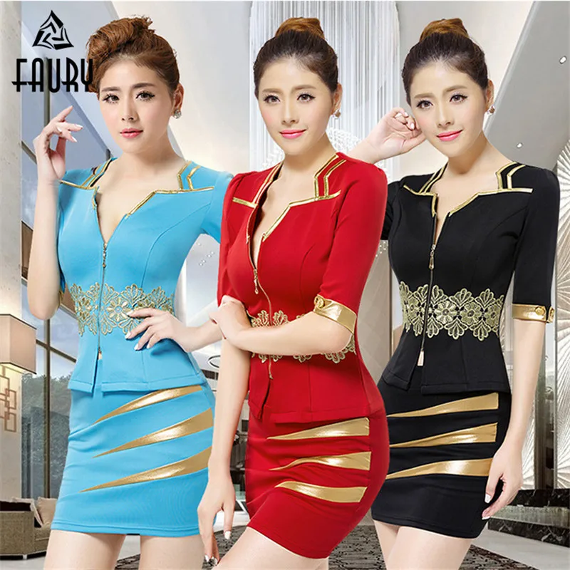 HIGH QUALITY Women Stewardess Uniforms Beauty Salon Sauna Technicians Workwear Middle Sleeves Nightclubs Profess